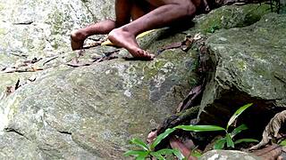 auntie gets public assfucking by nephew while bathing in jungle pond