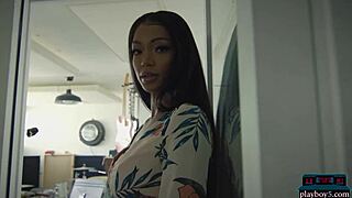 big booty ebony babe harley dean feels sexy during solo jeans striptease for playboy