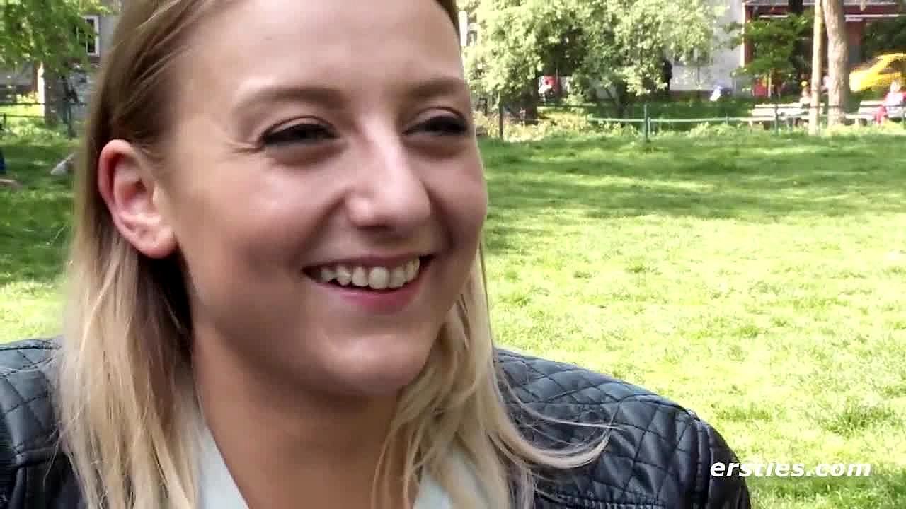 Hot busty blonde dives into her first gangbang with five bbcs, taking deepthroat and creampie loads.