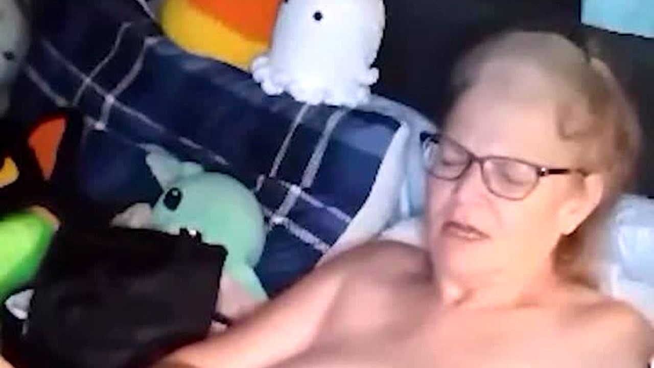 Hot cougar granny with saggy big natural tits strips naked for yoga session then fingers pussy to intense orgasm.