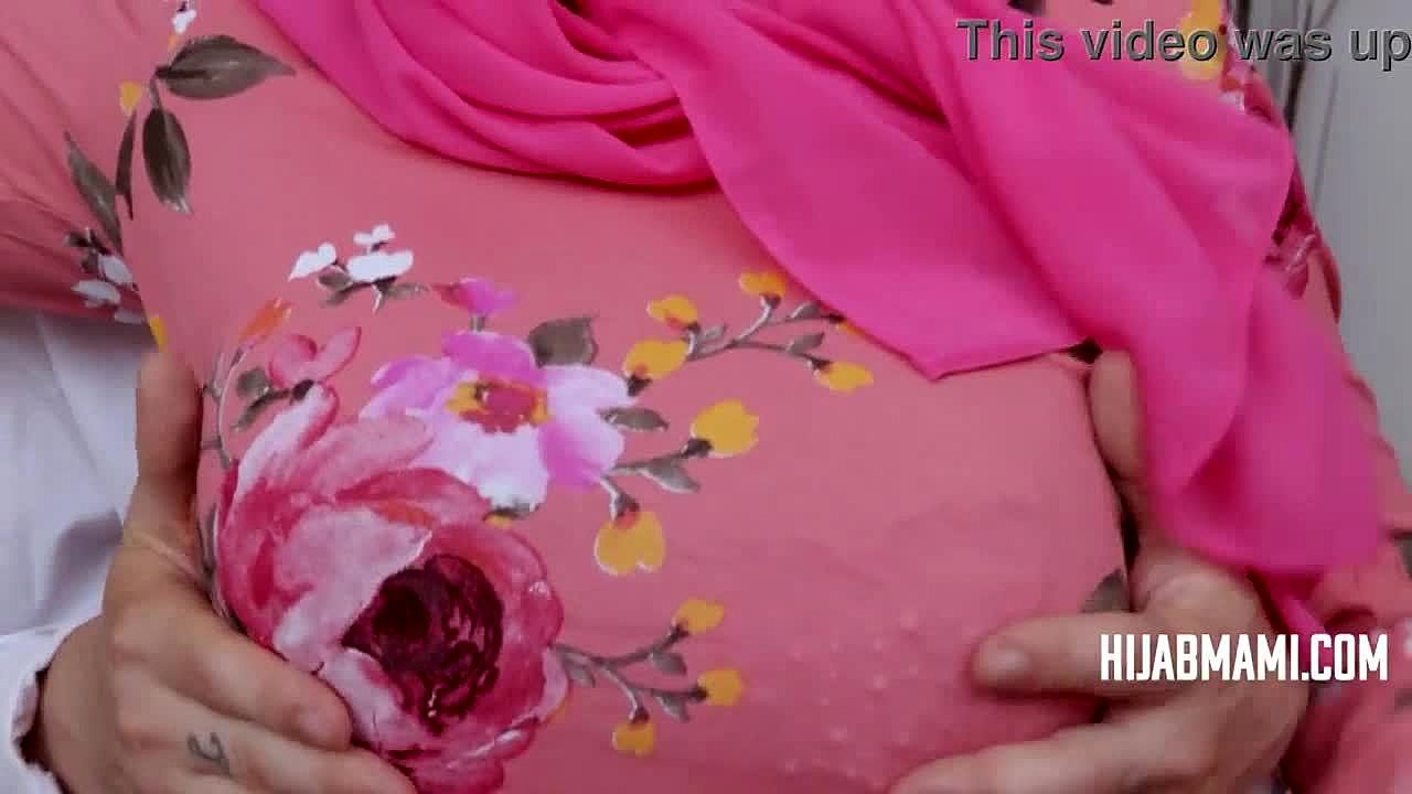 Look at my pantyhose, stepson, says the stepmom in hijab as she teases with her big tits and wet pussy.