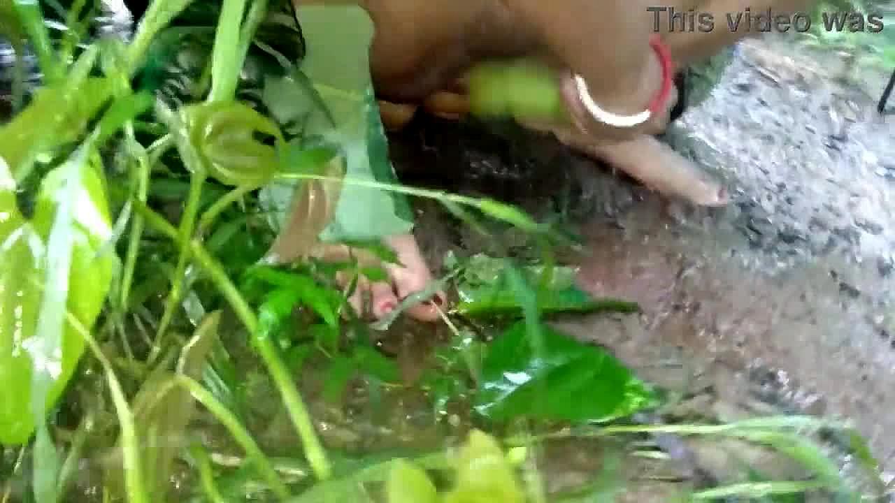 Indian stepmom fingers oiled pussy with bottle deep in jungle outdoors