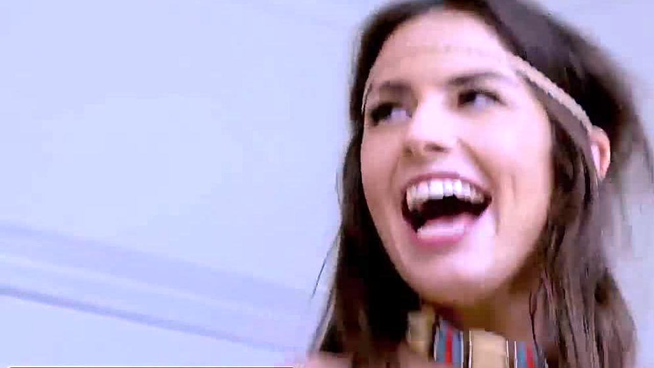 Brunette stepsister bangs stepbrother during movie night in HD