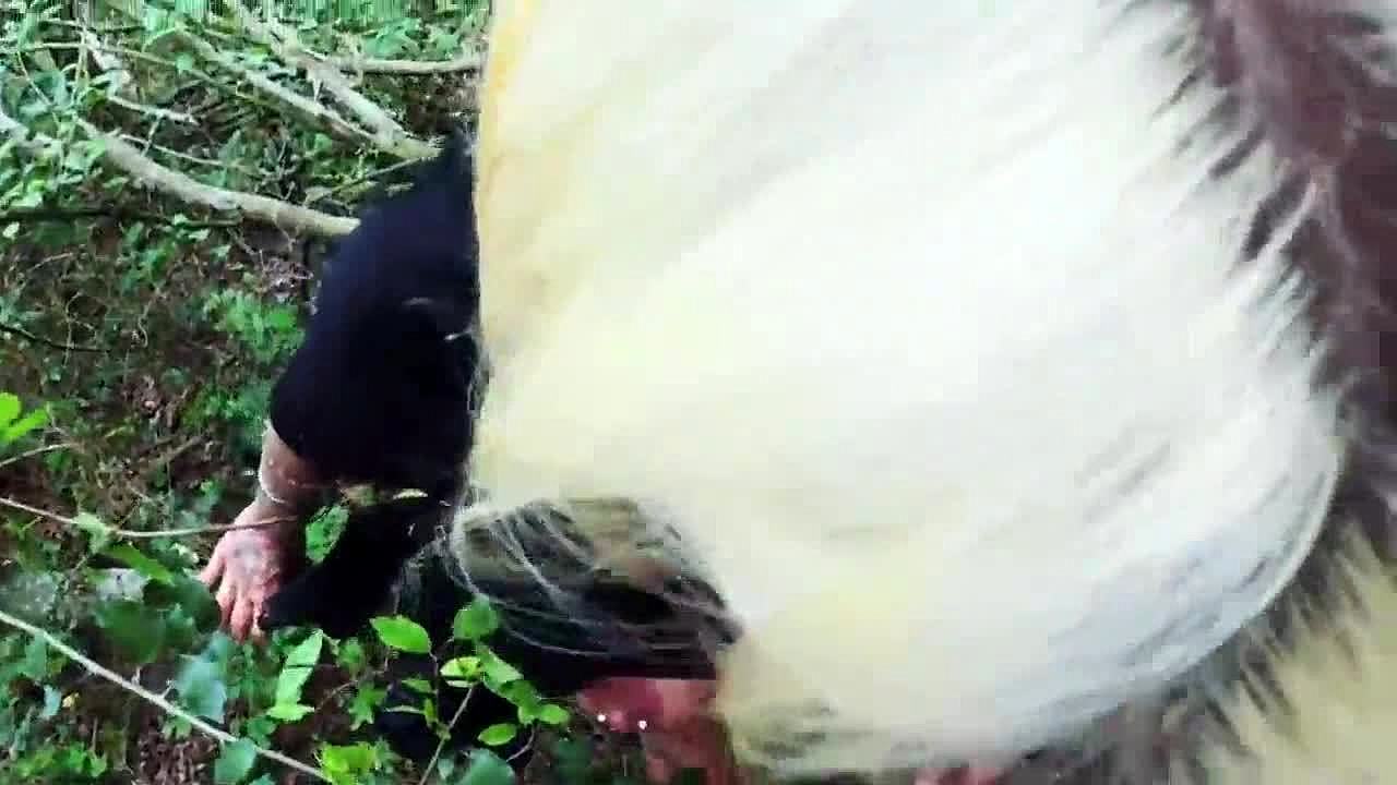 German Housewife Swallows Hard Outdoor by the Car in Public Action